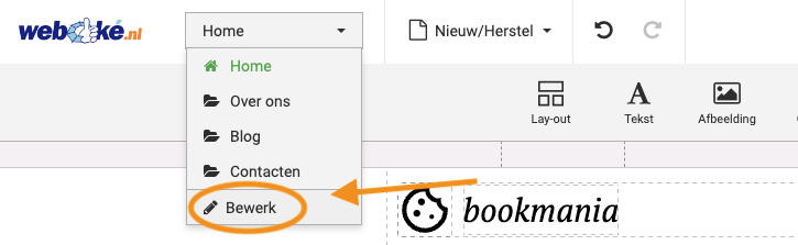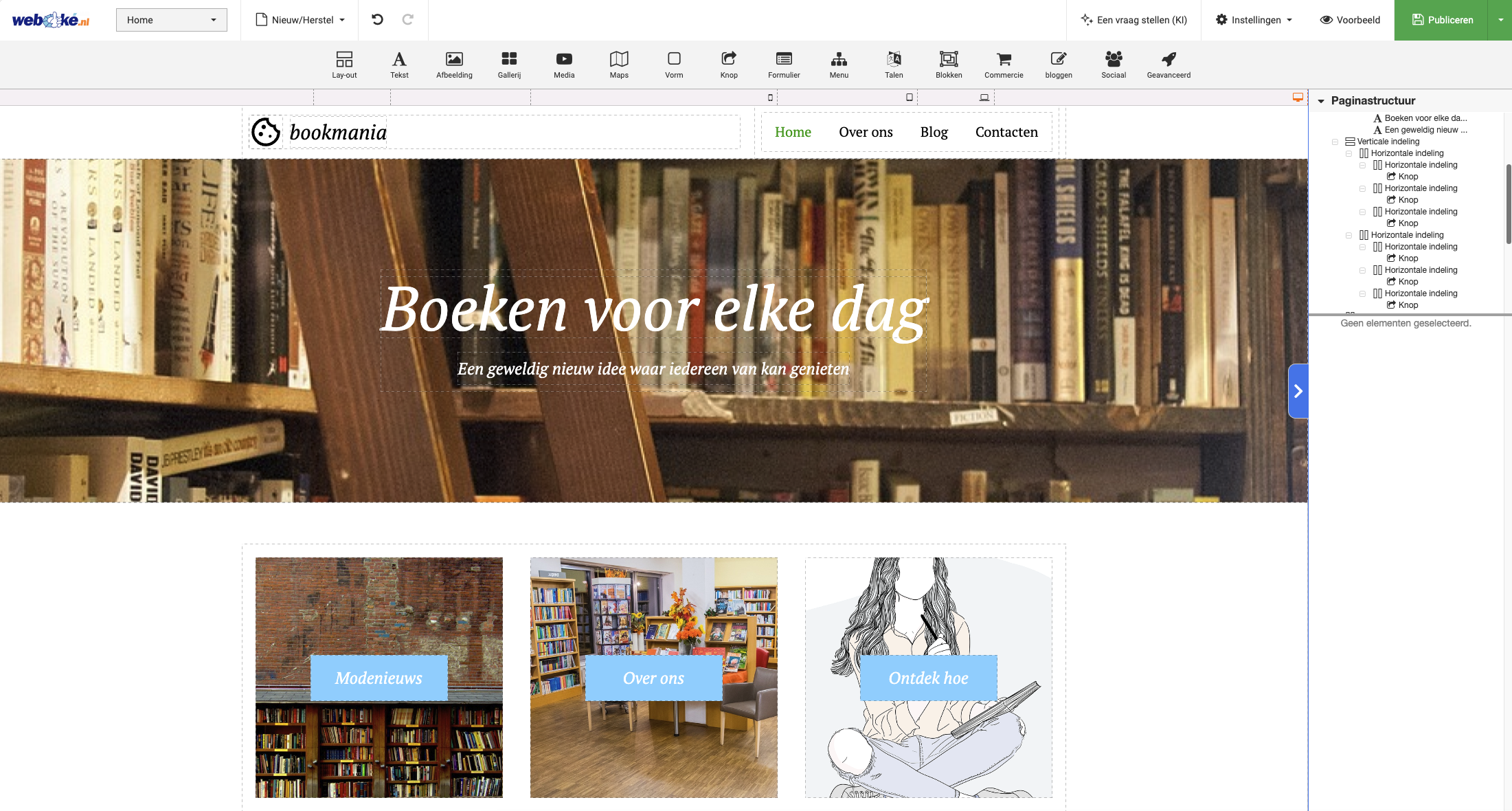 Na het genereren van de site kom je direct op je nieuwe site in de Sitebuilder terecht