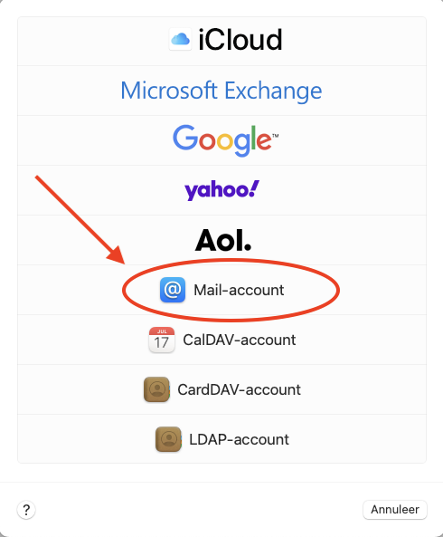 Stap 3: Kies voor 'Mail-account'