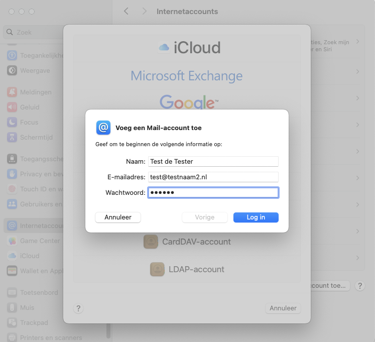 Klaar! De mailbox is nu toegevoegd aan Apple Mail.