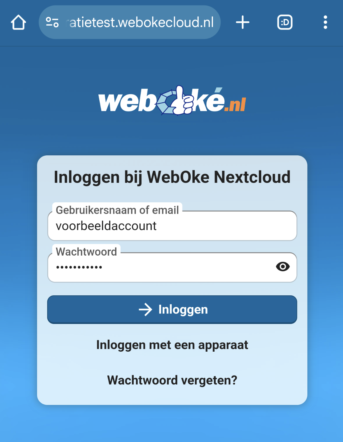 Stap 4 - Vervolgens wordt de browser geopend, daar vul je de gebruikersnaam en het wachtwoord van je Nextcloud account in, klik daarna op 'Inloggen'.
