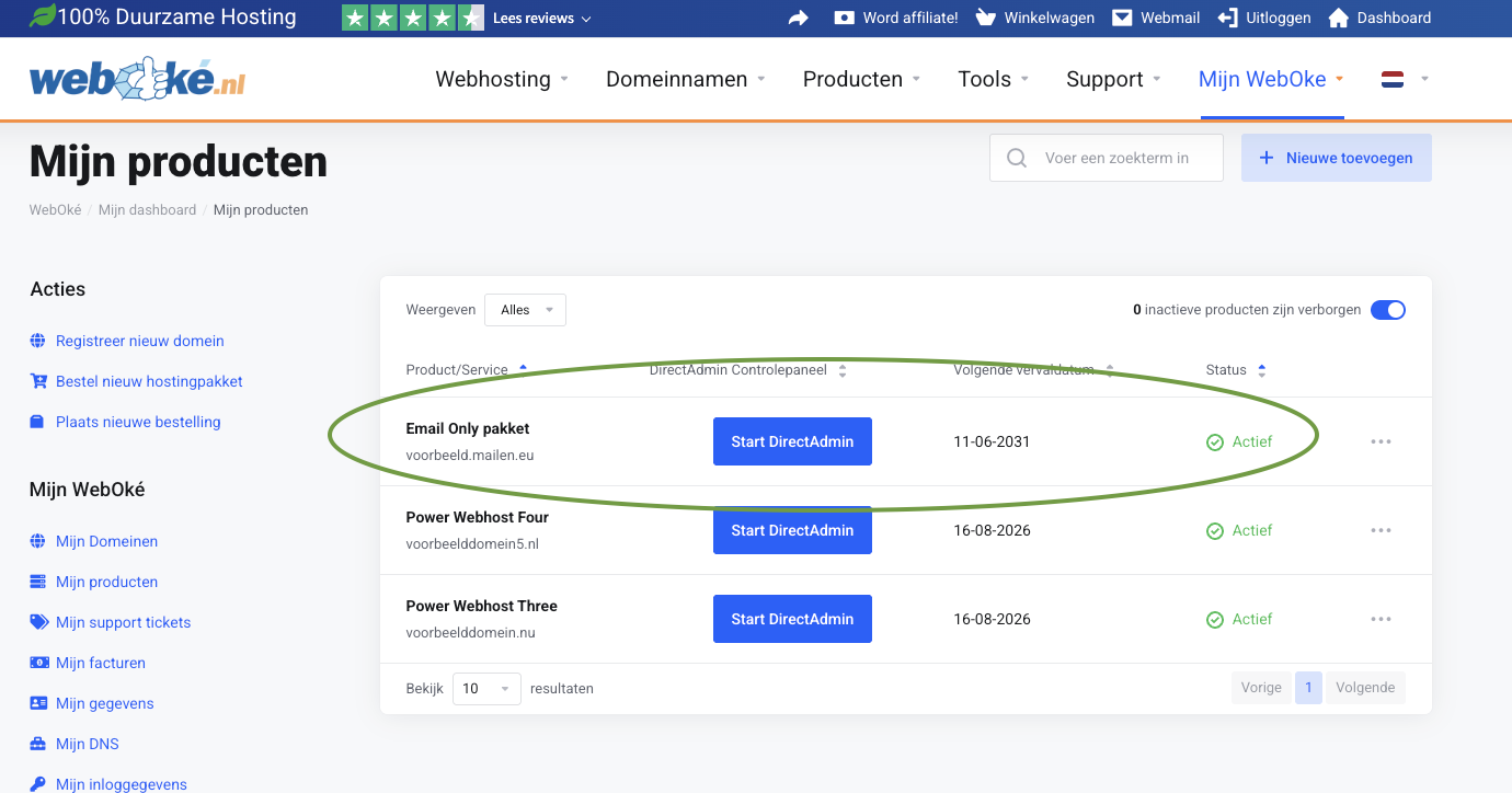 Als de mail van je domein bij ons gehost wordt, maar de DNS van het domein elders wordt beheert of de DNS van het domein met een A-record naar een andere provider verwijst, dan heb je onze servernaam nodig de mailbox die bij ons gehost wordt aan een mailapplicatie toe te voegen.