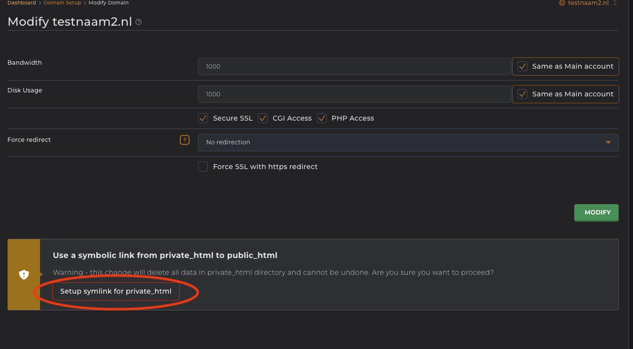 Schritt 4 - Klicken Sie auf 'Symlink für private_html einrichten'